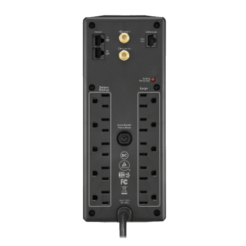 Designed to safeguard your valuable electronics from power disturbances, this uninterruptible power supply (UPS) offers reliable backup power and advanced features, making it an essential addition to any home or office setup. The 1500VA tower UPS has 10 total outlets, 5 of which are battery backup, and 5 that are surge protection only. It features Automatic Voltage Regulation to correct voltage dips and surges to proper levels.